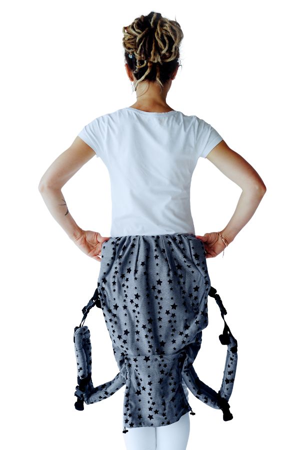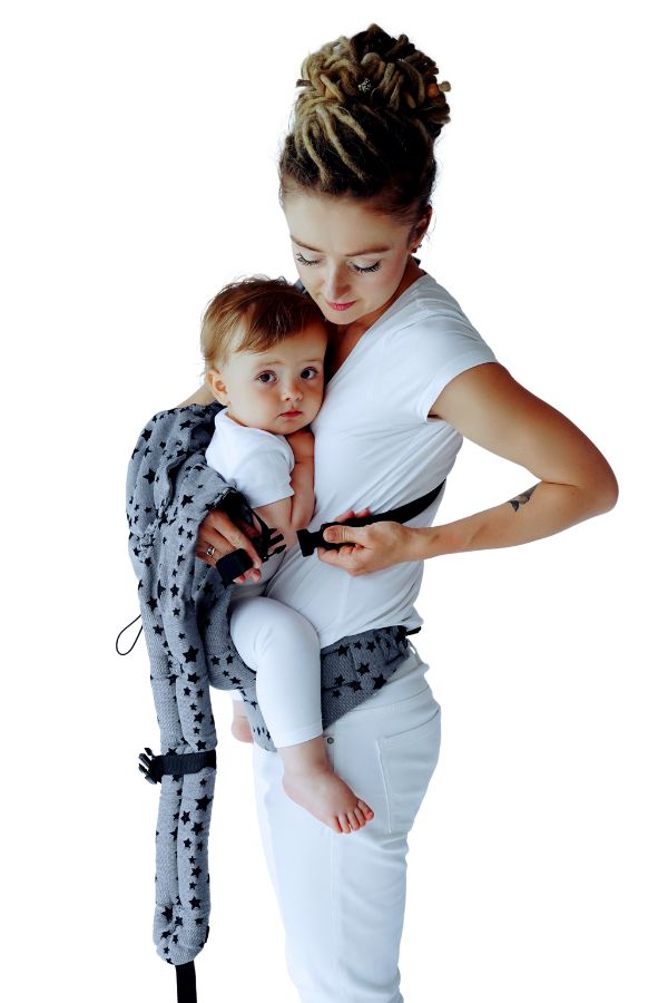 Ten sposób rozkłada ciężar dziecka lepiej i mniej obciąża plecy. Polecamy na dłuższe wyjścia.