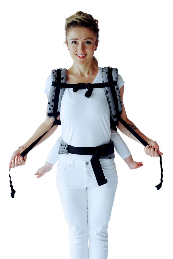 - Zapoznaj się z konstrukcją nosidła i wyreguluj wszystkie pasy oraz panel.