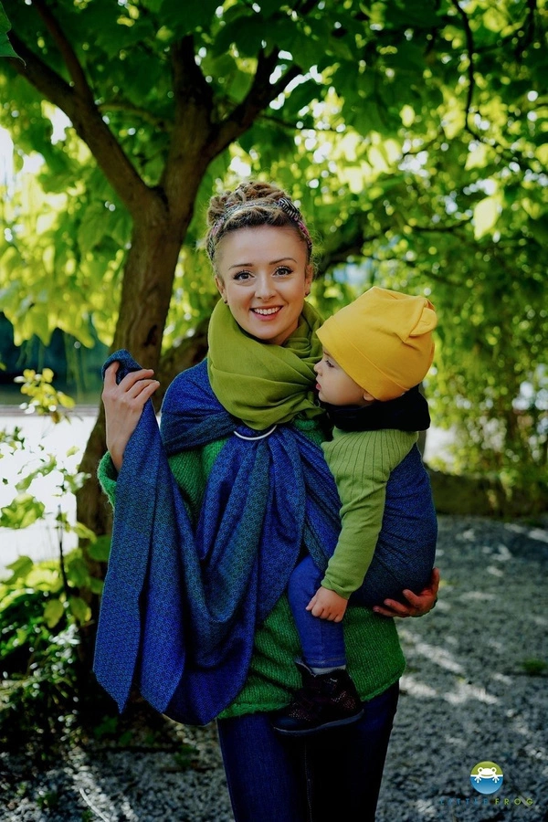 TAGS: babywearing, blue ring sling, heart-woven ring sling, toddler ring sling, heart weave, first ring sling, baby wrap carrier