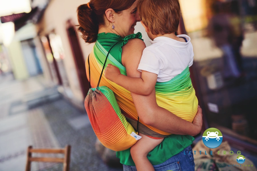 The ideal way to pack your wrap - for a walk or a trip. Then your sling is a small handy pack, which you can toss it into the car, trolley or the handbag. Later, older child can walk with it to kindergarden or school.